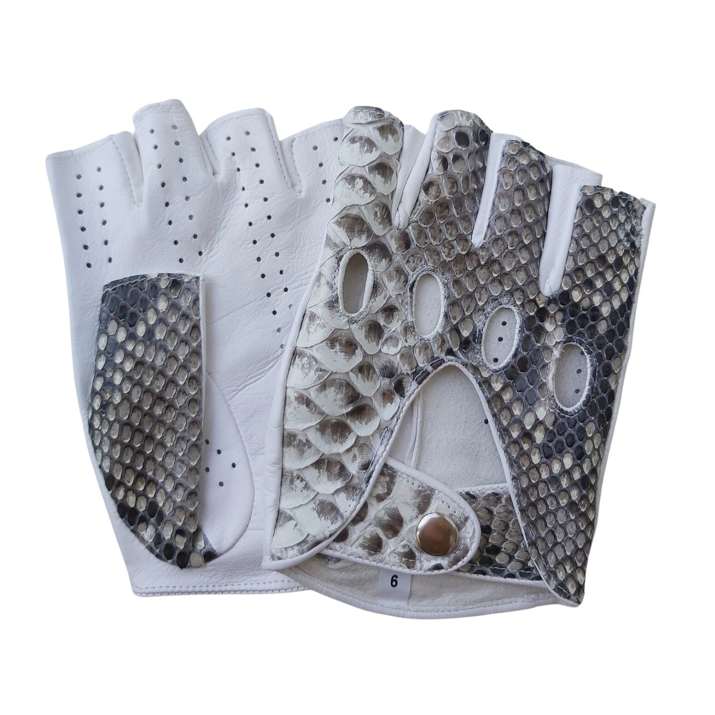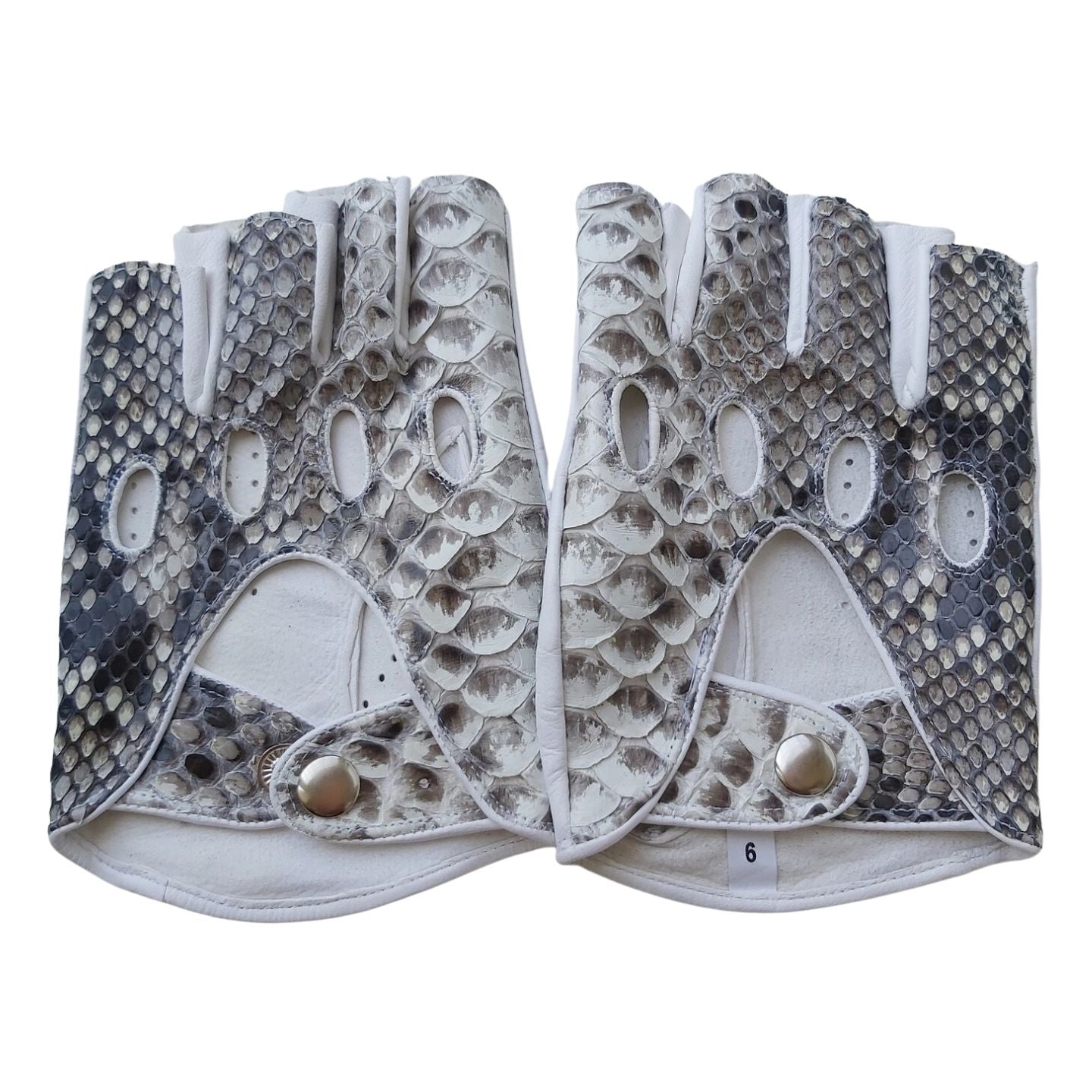 These premium grey and white python skin driving gloves are exquisite and luxurious. Hand-crafted for a perfect, customized fit, these gloves provide superior grip and protection. Make a statement of style and elegance, no matter where you’re heading.