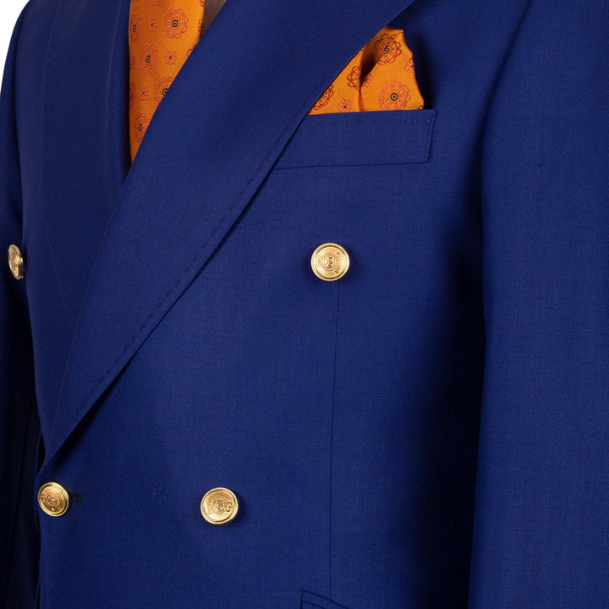 The Maison Kingsley Menswear Elite Collection offers a fresh take on the traditional Tuxedo style, crafted from a luxurious silk-wool blend and designed with a relaxed fit. The suit includes trousers and a double-breasted jacket with silk accents throughout, and can be paired with multiple accessories for a refined, polished look.