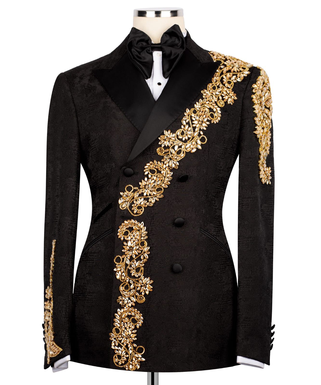This stylish tuxedo is a showstopper. Features asymmetrically embellished rhinestones on the shoulder and off the cuff. Crafted from a luxurious silk-wool blend and designed with a relaxed, tailored fit. Can be paired with multiple accessories for a refined, polished look.
