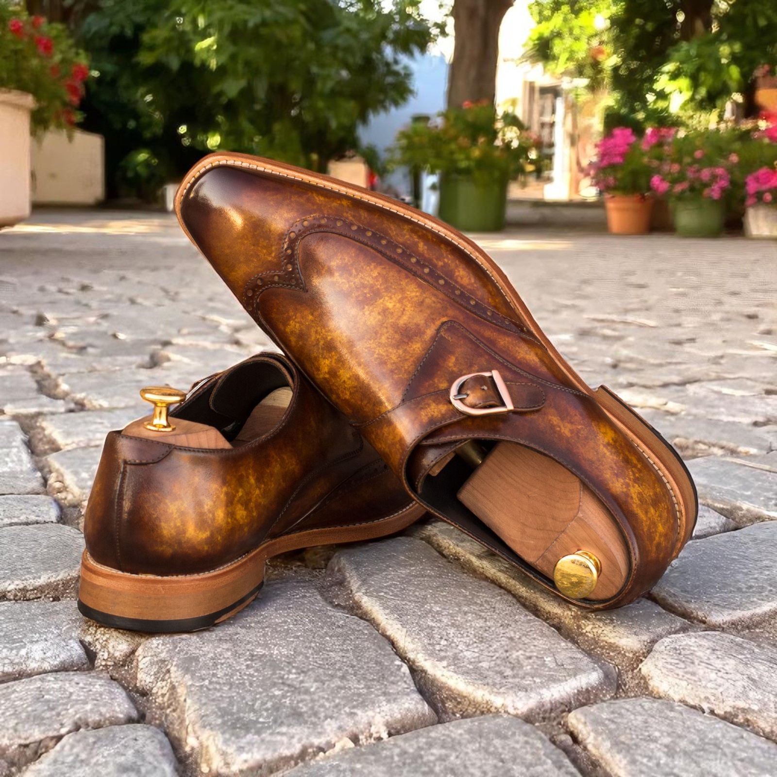 In recent years the Wingtip Single Monk Strap has become extremely popular. It is characterized by a single strap cutting across the front upper of the shoe secured by a buckle.